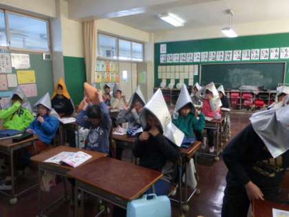 5時間目の途中に、火災を想定した避難訓練が行われました。
