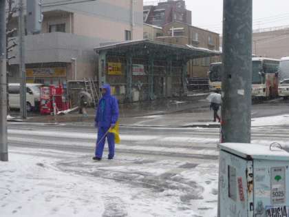 通学路の安全確保のため立っていました。