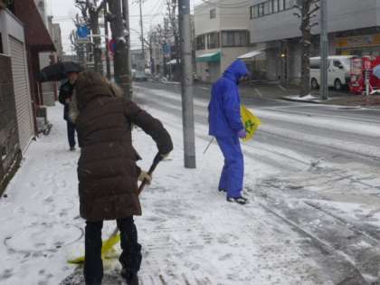雪に備えて主事さんや先生たちで雪かきをしたり、