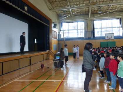 6年生のあいさつに続いてみんな元気に朝のあいさつをしました。