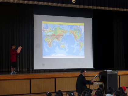今日の朝会ではオーストリアのウィーン市に海外派遣された5年生から、