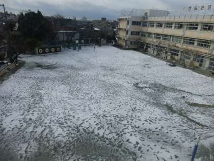 また放課後には先生たちが校庭に出て、雪をどかしたり水をかき出したりして、