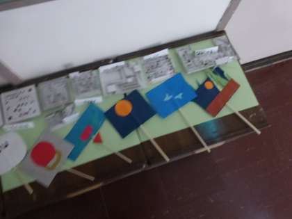 図工室の前に、マンガ造形クラブの子たちがつくった