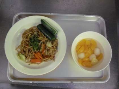 献立名 ソース焼きそば 牛乳 きゅうりのひと塩 フルーツ白玉