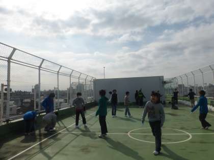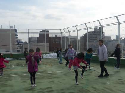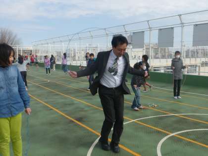 若小の屋上は運動に適した舗装がされていますのでなわとびにもぴったり。
