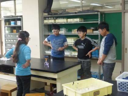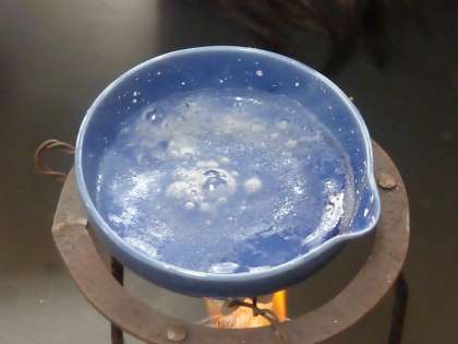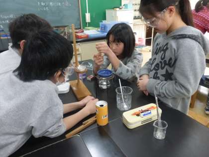 5年生が理科の学習で水溶液に溶けた塩を取りだしていました。