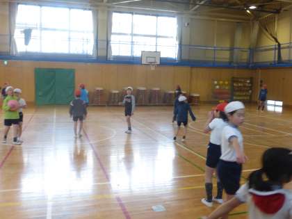 3年生が中休みの体育館に集合して、元気に遊んでいました。