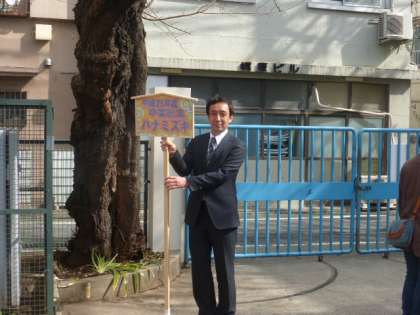 子ども達がつくった立て札を観て、副校長先生もにっこりです。