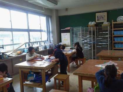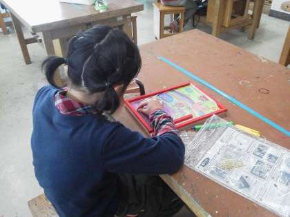 3年生が図工の時間にくぎを打つ活動に取り組みました。