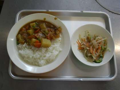 献立名 カレーライス 牛乳 福神漬 こんにゃくサラダ