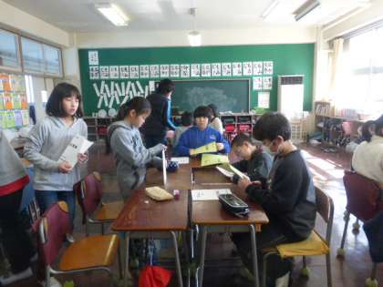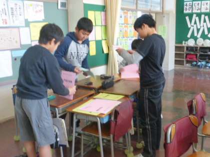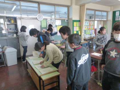 卒業式に向けて5年生が卒業式の台本を製本しました。
