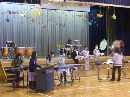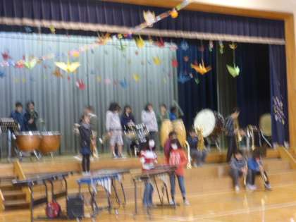器楽クラブの子たちと、若小金管バンドのメンバーたちが、
