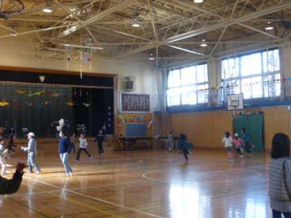 卒業ムードの溢れる体育館に、元気な子供たちの声が響きます。