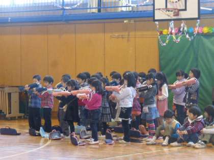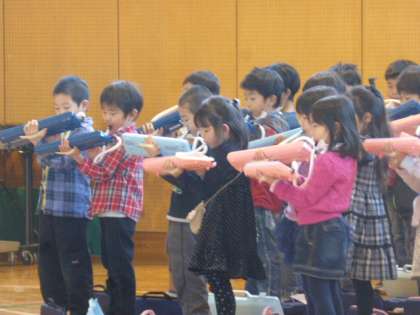 小さな指で一生懸命に演奏する鍵盤ハーモニカを、6年生は嬉しそうに聴き入っていました。