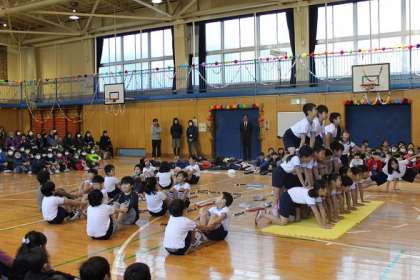 「ミニ組体操」と「ミニ鼓笛隊」を披露しました。
