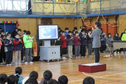 最後に「ひこうき雲」の歌と合奏のプレゼント。