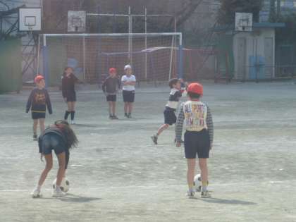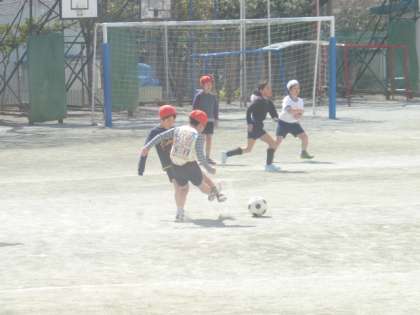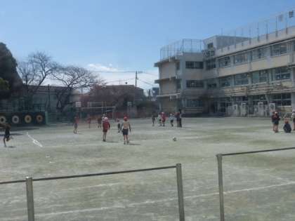 校庭では3年生が元気にサッカーをしていました。