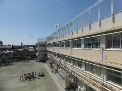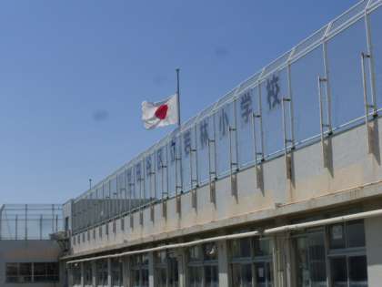 校舎の屋上には朝から半旗がはためいています。