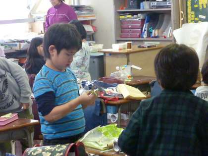 2年生が生活科の時間におもちゃ作りをしていました。
