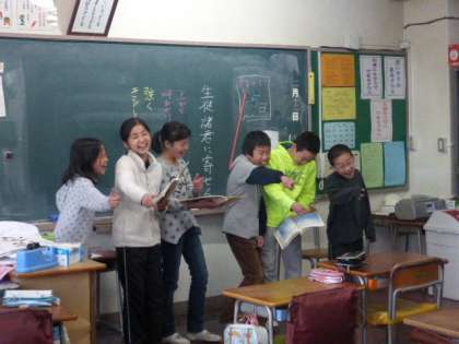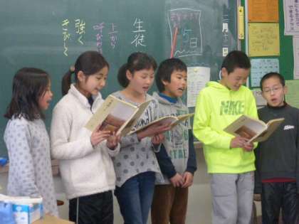 5年生が日本語の学習で宮沢賢治の詩を音読しました。