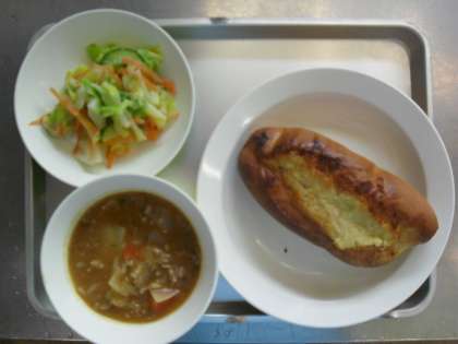 献立名 ガーリックトースト 牛乳 ハンガリアンシチュー きゃべつサラダ
