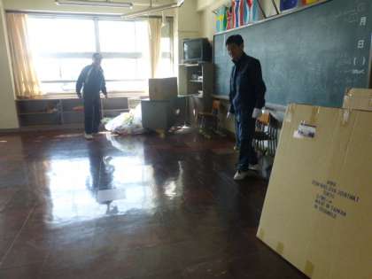 主事さんが授業時間に、来年度1年生の教室になる部屋の掃除をしていました。