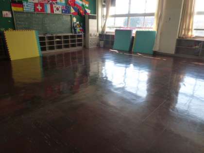さすがは主事さん、あっという間に床はピカピカになりました。