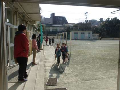 登校してくる子も暖かい朝日を浴びて気持ちよさそうです。