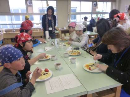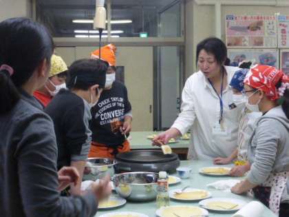1組ではホットケーキを、2組ではクレープをつくりました。