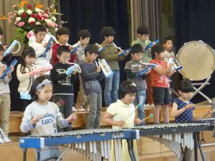 歌と合奏で新入生たちを力いっぱい歓迎です!