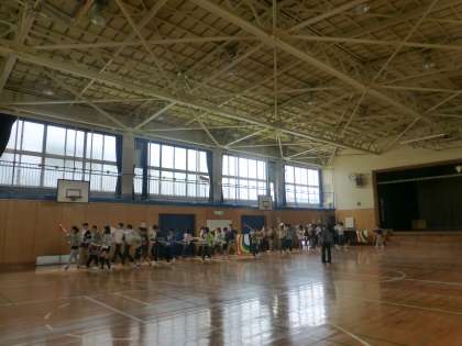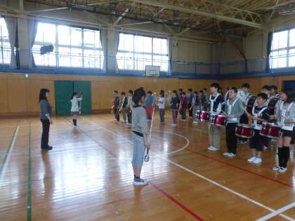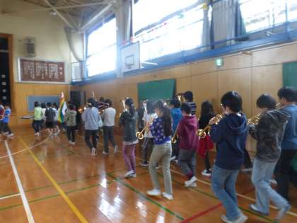 来週月曜日の集会に向けて、マーチングの練習を初めて行いました。