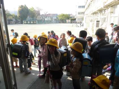 校長先生も嬉しそうに正門のところで子どもたちを迎え入れていました。