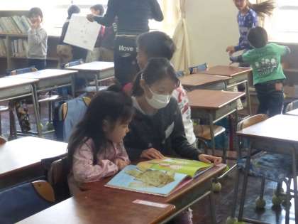 一緒に本を読んだり遊んだり。