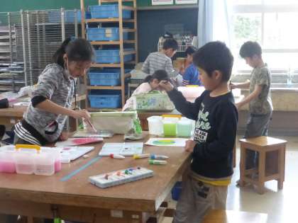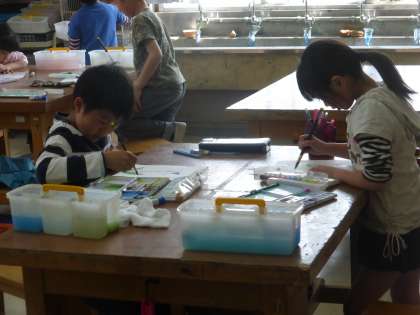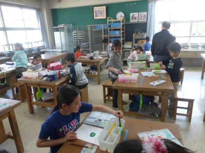 4年生が図工の時間に素敵なお花の絵を描いていました。