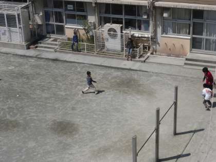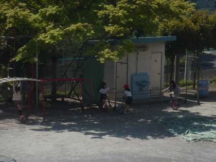日差しは夏のようでしたが、若小の子たちは元気いっぱい外遊びをしていました。
