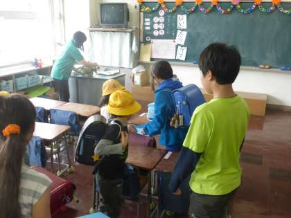 1年生は給食にも慣れて、すっかり若小の子になりました。