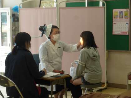 今日は校医さんがやってきて眼科検診をしてくれました。