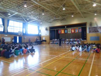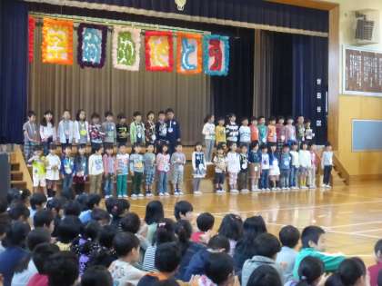 1年生がお礼の出し物でミッキーマウスマーチの歌を歌ってくれました。