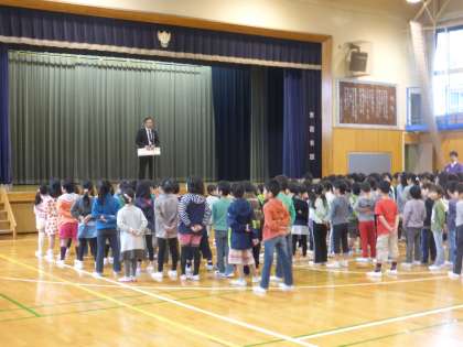 若小の一週間は児童朝会から始まります。