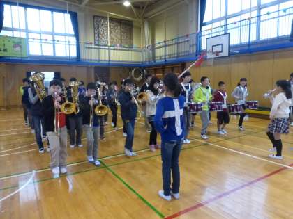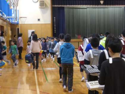 朝会の最後は6年生の演奏する鼓笛の登場です。
