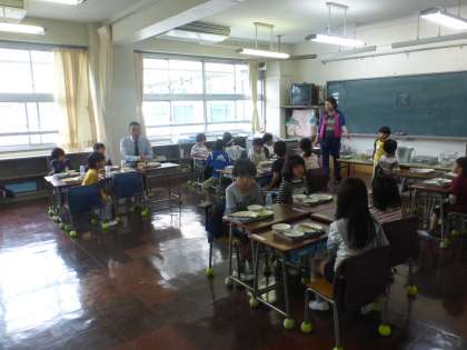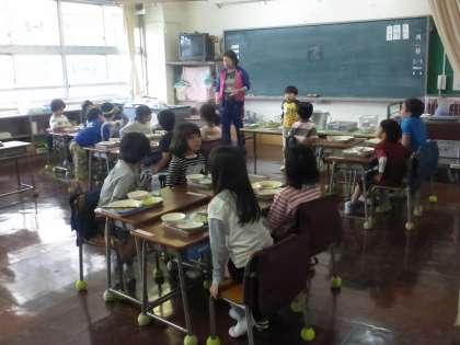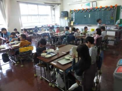 お代りする子もたくさんいて、活気あふれる給食時間です。