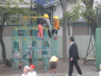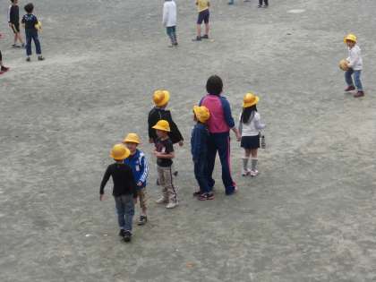 校庭のあちらこちらに見える黄色い帽子が目印です。
