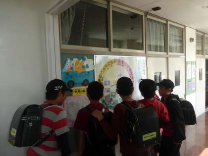 黒板の前を通りかかるたびに子どもたちは興味津々のようです。