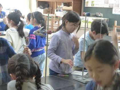 おもりの重さ、糸の長さに角度等、様々に条件を変えて記録をとりました。