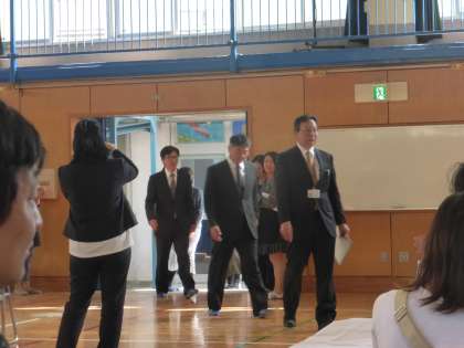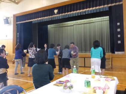 PTA役員さんにご用意をいただきましたPTA歓送迎会が、放課後の体育館で行われました。