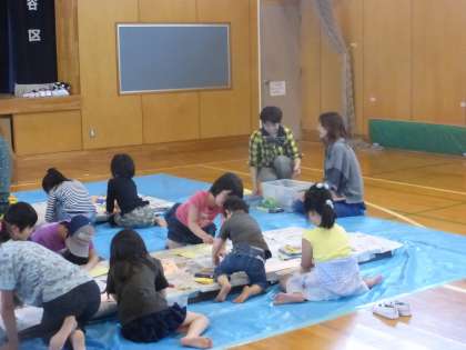 子どもたちも楽しくこいのぼり作りや児童館の方の用意してくれたアトラクションに参加していました。