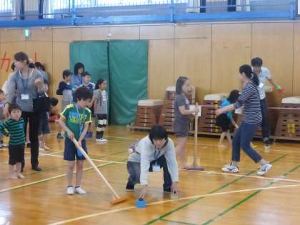 体育館のあちらこちらで若小の保護者の方が大活躍!