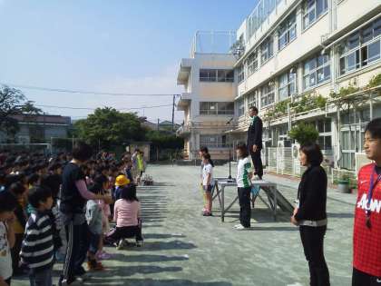 若小の一週間は全校朝会から始まります。