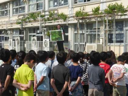 代表児童のあいさつの後、校長先生から不思議なことに興味を持つ大切さについてお話がありました。