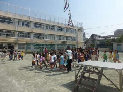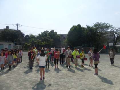 朝会の後は6年生の鼓笛隊が演奏する若小マーチで教室に向かいます。